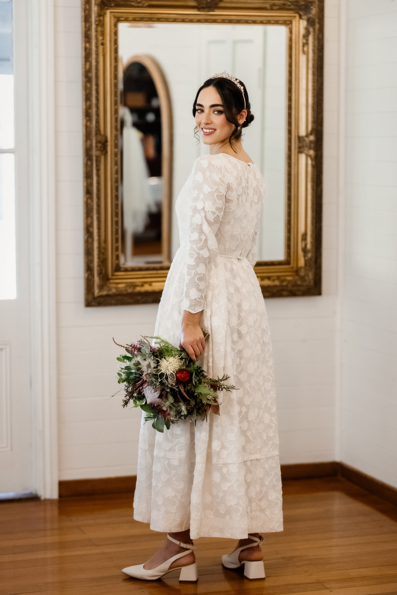 My day kicked off with Reuben and his groomsmen, where the banter was thick and set a lively, fun tone for the day. Then it was off to see Caitlin and her bridesmaids—her sisters and mother—who looked stunning and were impressively organised. Caitlin wore her grandmother’s wedding dress from the early 60s, and it looked timeless (there’s that special sauce!). We breezed through some candid shots & classic portraits before heading to the ceremony.