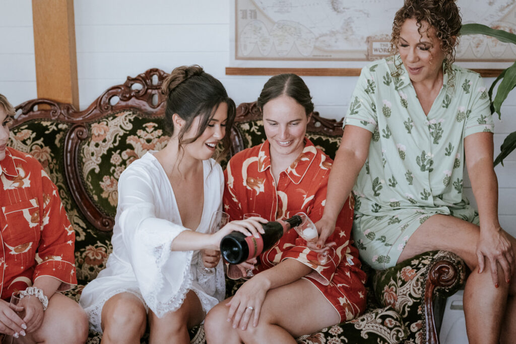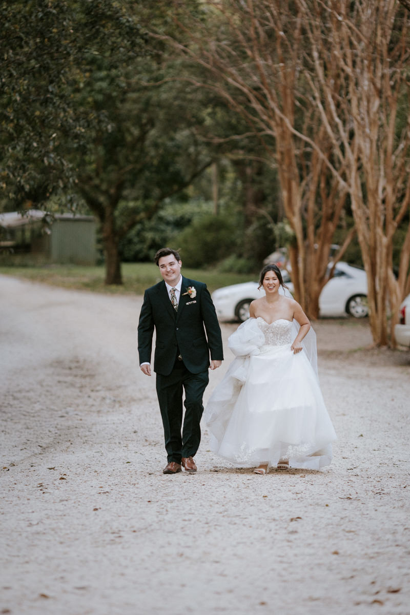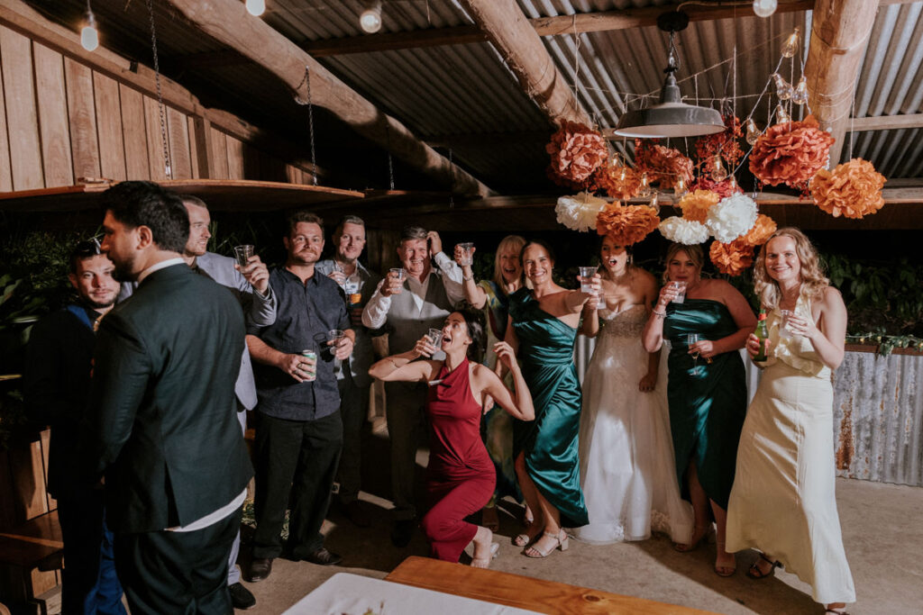 From there, it was hugs, cheers, and a big group shot before family photos. Guests made their way down to the barn for cocktail hour while I stayed back with the bridal party for some fun shots, then stole Marley & Dane away for a wander. We stopped at a few spots along the way, capturing relaxed, natural moments with just the two of them.