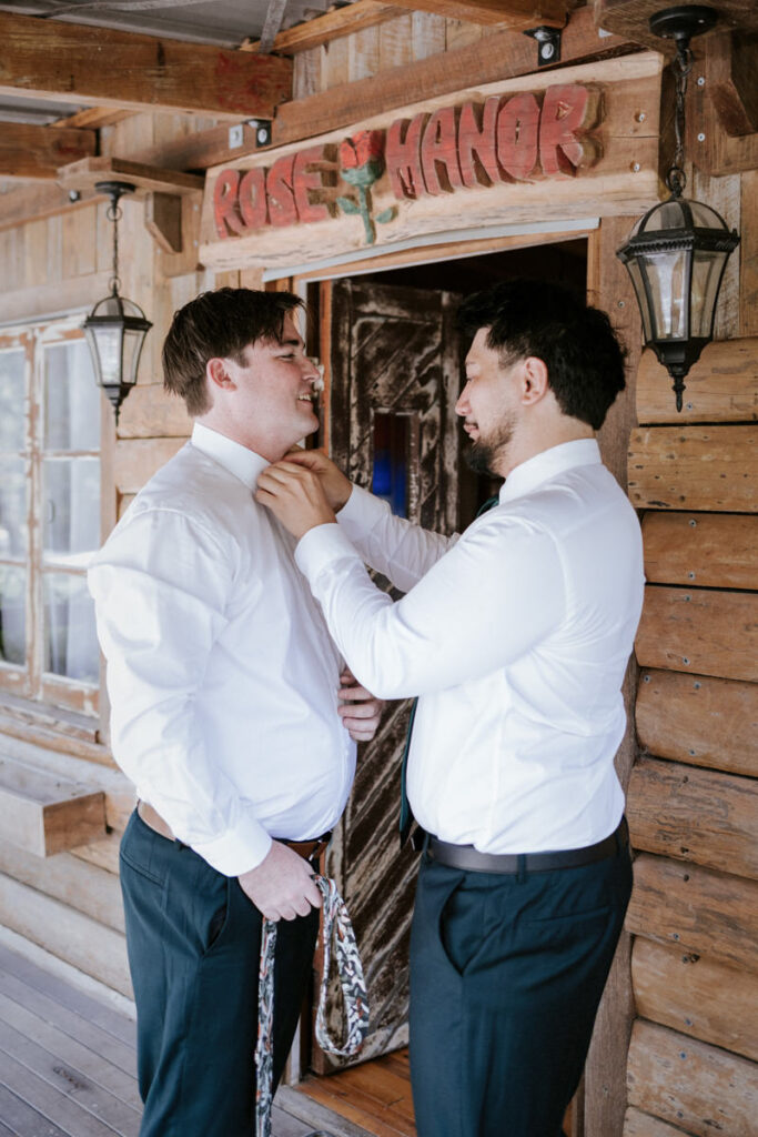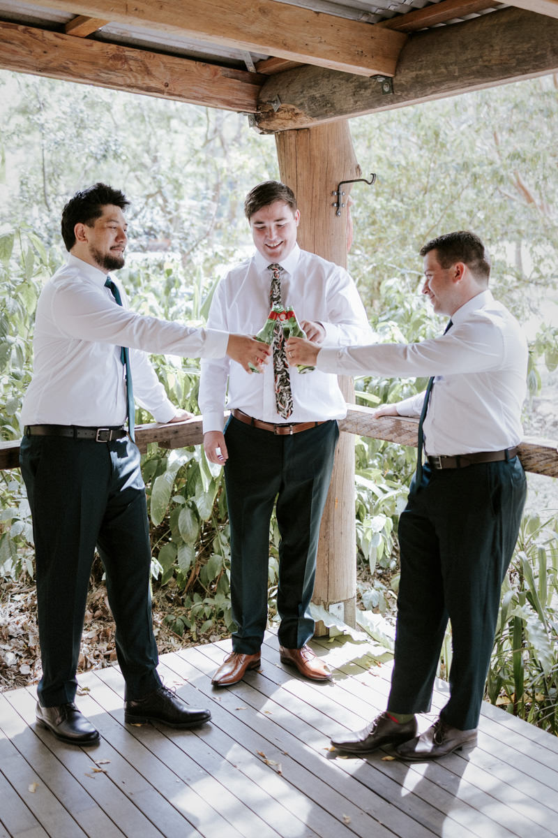 The day started with the girls getting ready, spirits were high as the hair and makeup ladies buzzed around. I slipped in to grab some candid shots before heading off to find the boys over at the Rose Manor cabin. The banter was thick, and while Dane tried to play it cool, you could see those pre-ceremony nerves peeking through. A few relaxed photos with the guys (I never push too hard at this stage—most men hate photos before the fun really starts!) and then I made my way back to the girls.