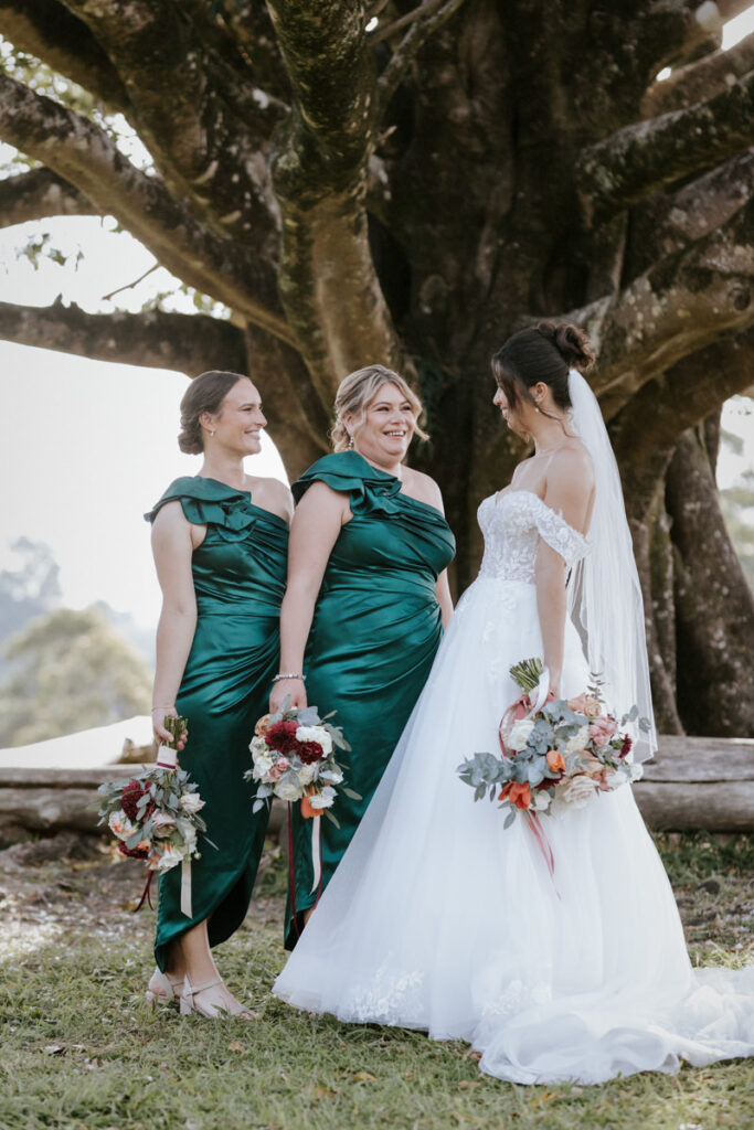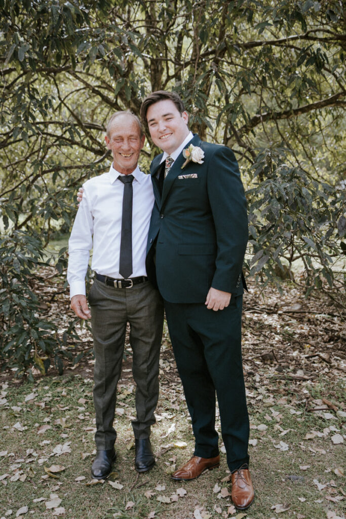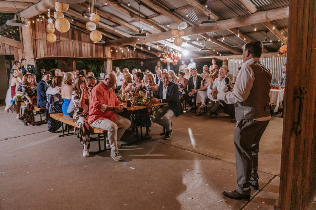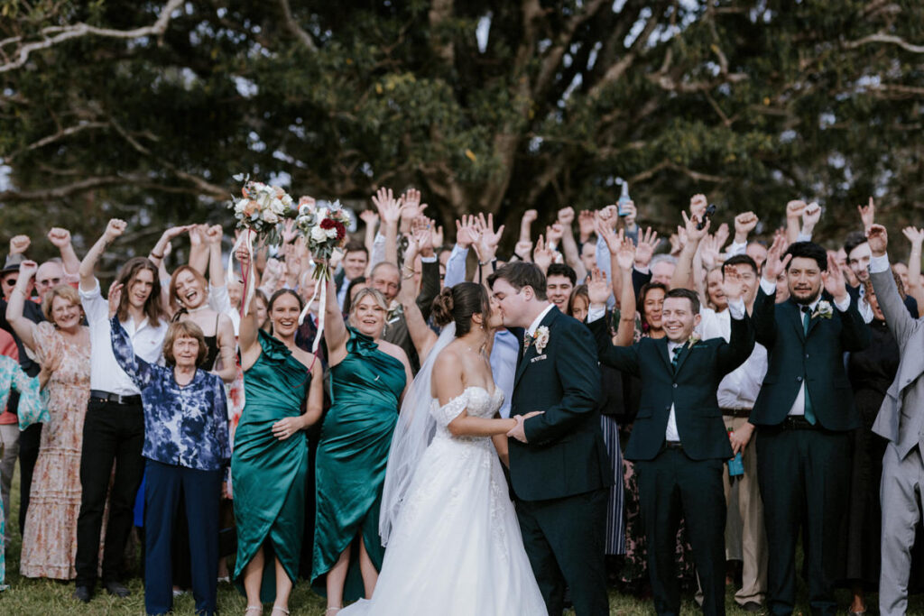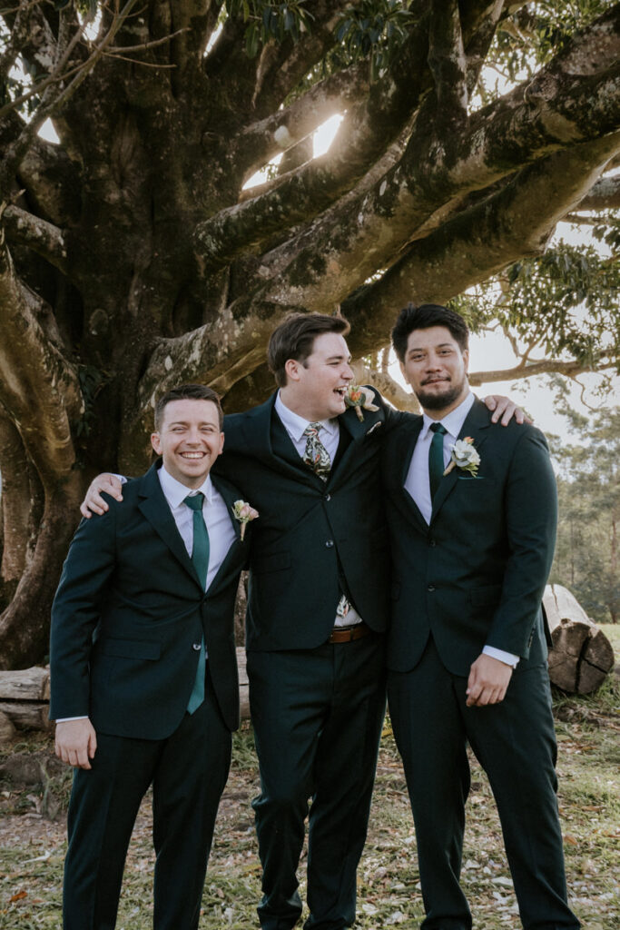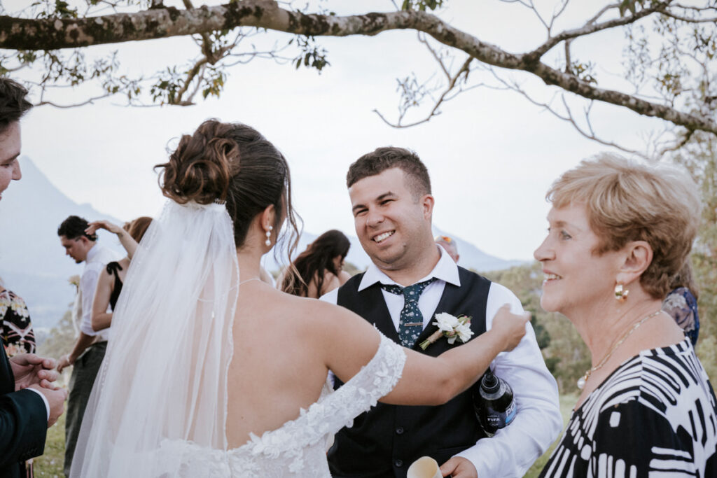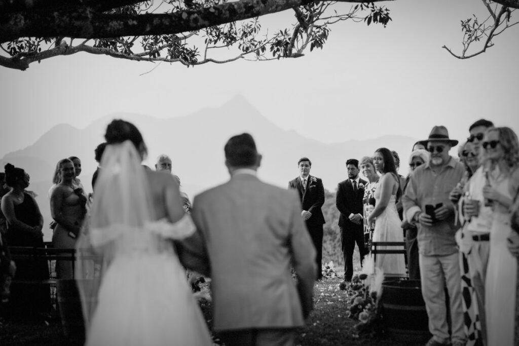 The ceremony setting? Absolutely breathtaking. Under the massive fig tree overlooking the Tweed Valley – it doesn’t get much better. Adding a twist of humour, Marley’s brother and cousin stepped in as “flower men,” complete with bumbags full of petals, showering guests as they strutted down the aisle. The crowd loved it.
