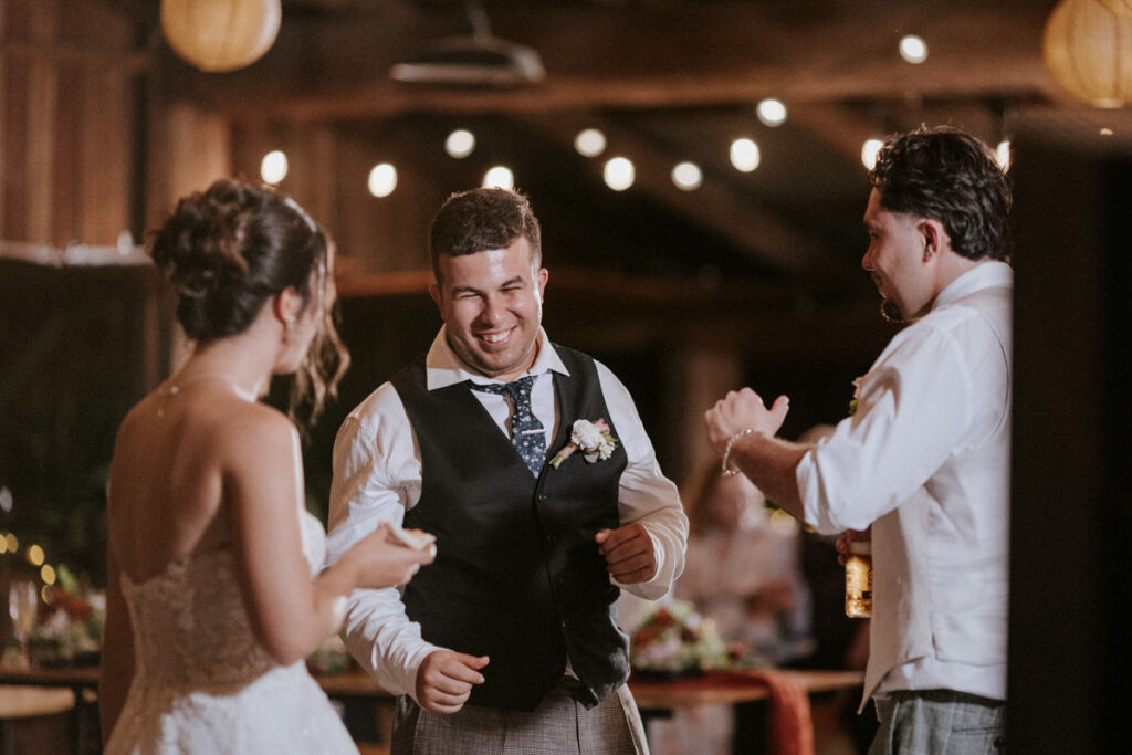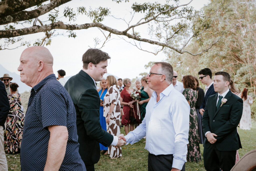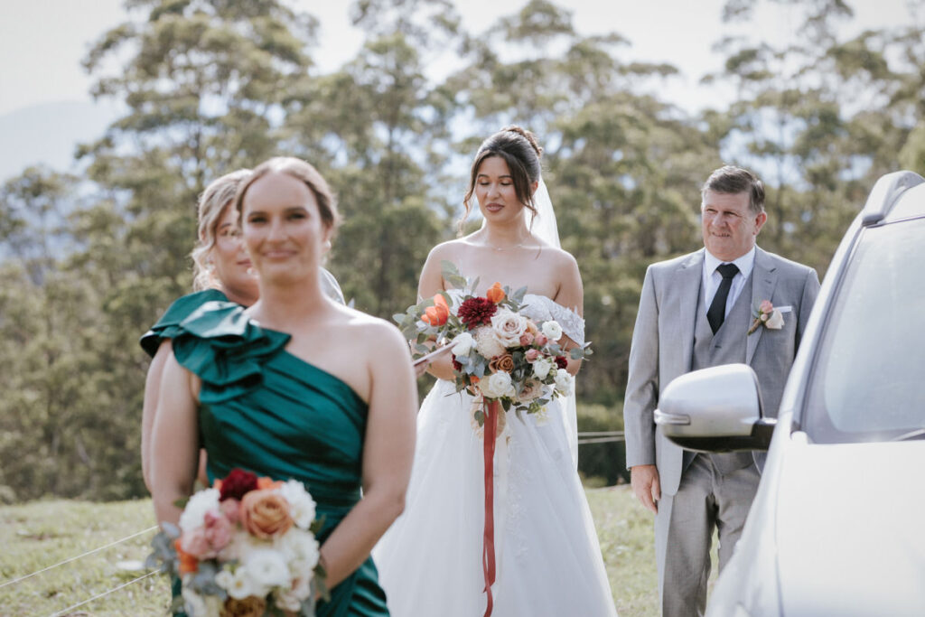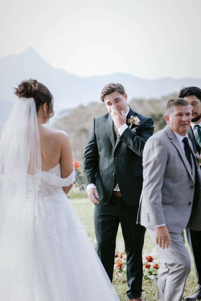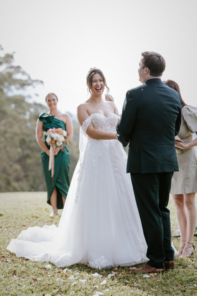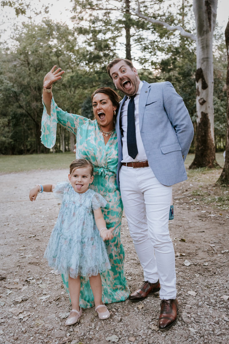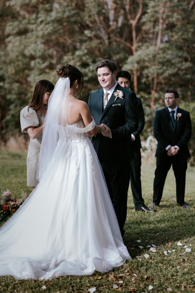 The ceremony setting? Absolutely breathtaking. Under the massive fig tree overlooking the Tweed Valley – it doesn’t get much better. Adding a twist of humour, Marley’s brother and cousin stepped in as “flower men,” complete with bumbags full of petals, showering guests as they strutted down the aisle. The crowd loved it.