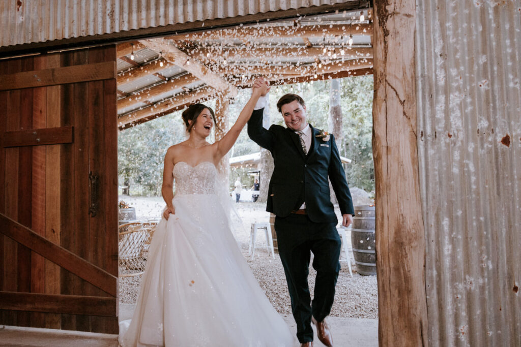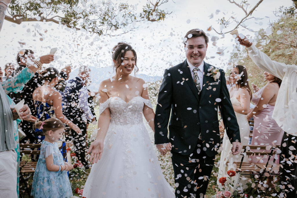 Then came the moment everyone was waiting for. Marley walked down the aisle with her dad by her side, and all eyes were on her – especially Dane’s. The ceremony, led by Renee from Help Me Hitch, was heartfelt with the perfect balance of emotion and laughter. Renee always brings such a positive energy and a few cheeky laughs with her sharp wit, which made the whole moment even more memorable. After their ‘I do’s,’ they sealed it with a kiss and strolled back down the aisle through a storm of confetti.