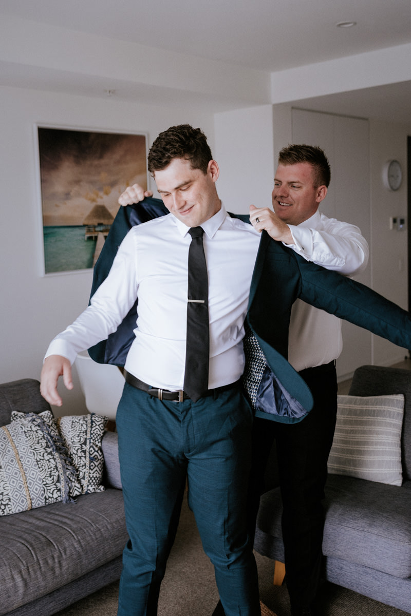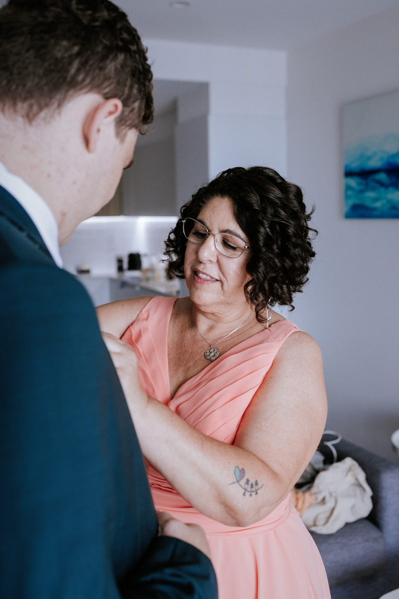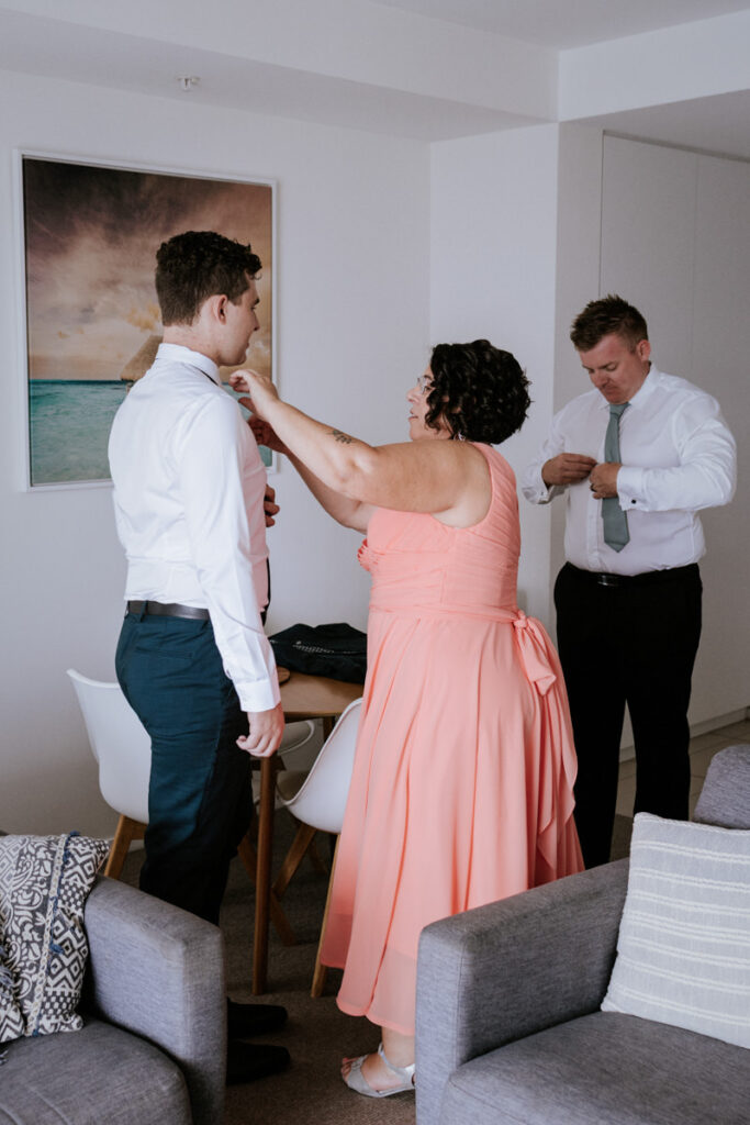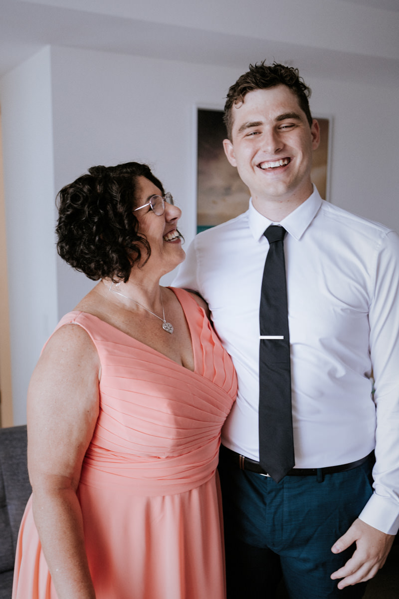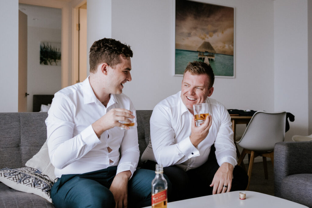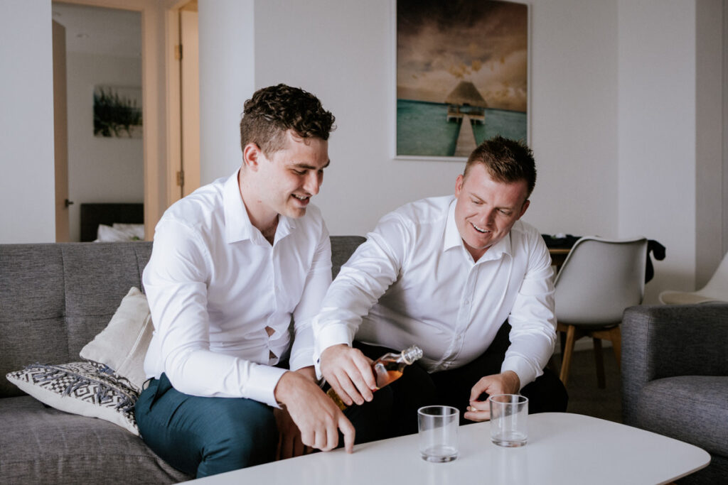 I kicked off the morning with the girls getting ready. Hair and makeup were in full swing, spirits were high, and everyone was buzzing. After a few candid shots, I ducked over to a nearby apartment to find the boys. The banter was thick, nerves were kicking in, and Nicholas and his best man shared a quick nip of Johnny Walker to steady things. We grabbed a few relaxed photos with the boys, plus a really sweet moment with Nicholas and his mum, before I made my way back to the girls.