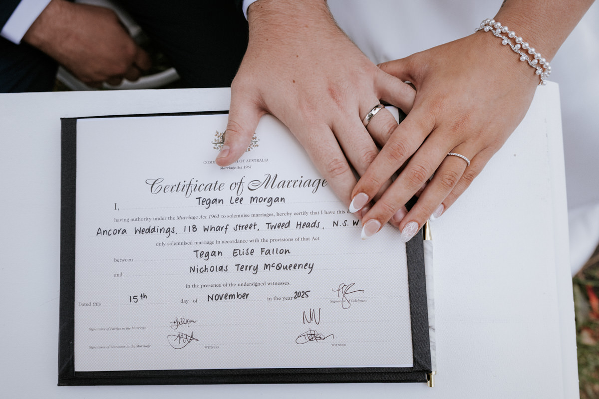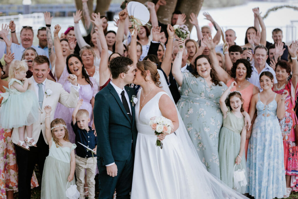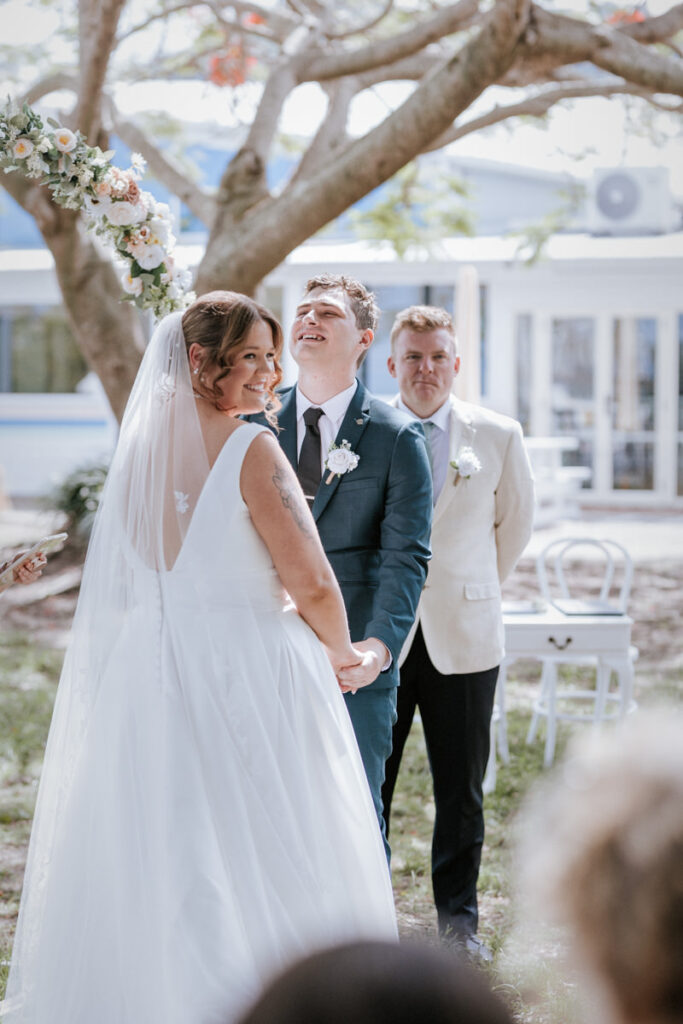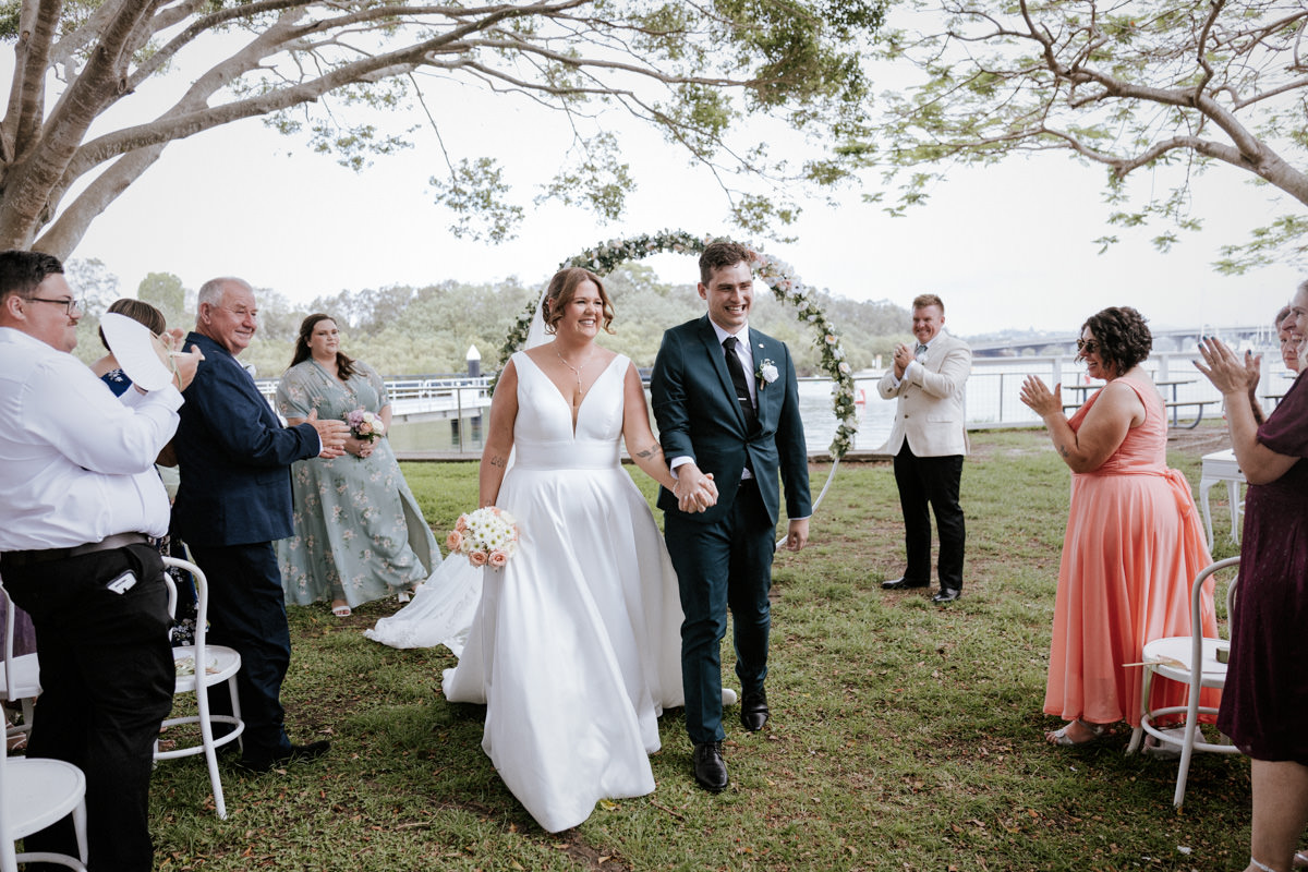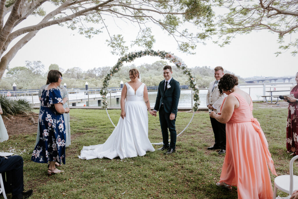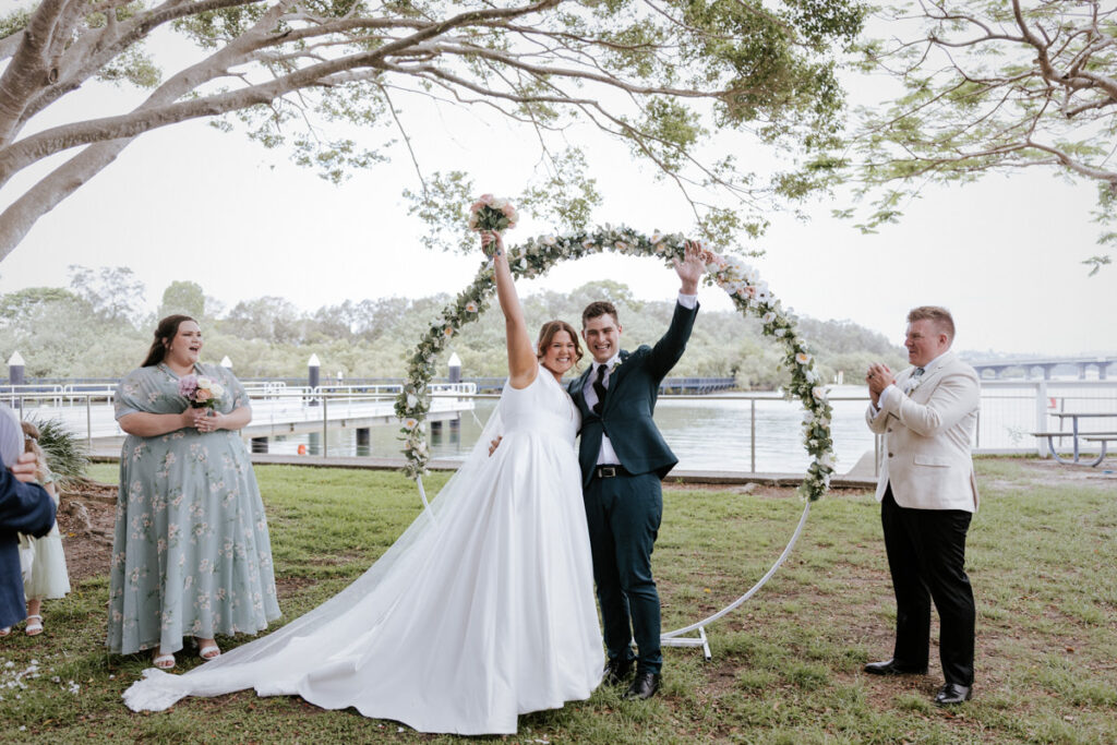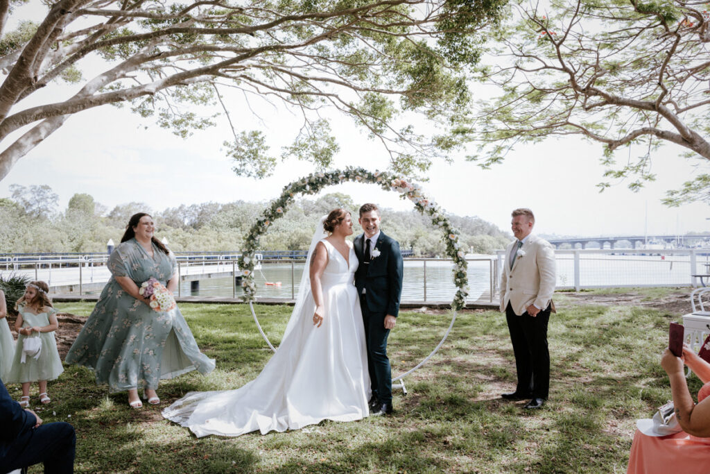 Guests had gathered under the big tree overlooking the Tweed River, such a stunning spot for a ceremony. Tegan walked down the aisle with both her mum and dad beside her, and you could feel the emotion in the air. Nicholas especially was in awe. The ceremony was heartfelt with just the right balance of laughter and happy tears. They shared rings, sealed it with a kiss, and everyone erupted into cheers.