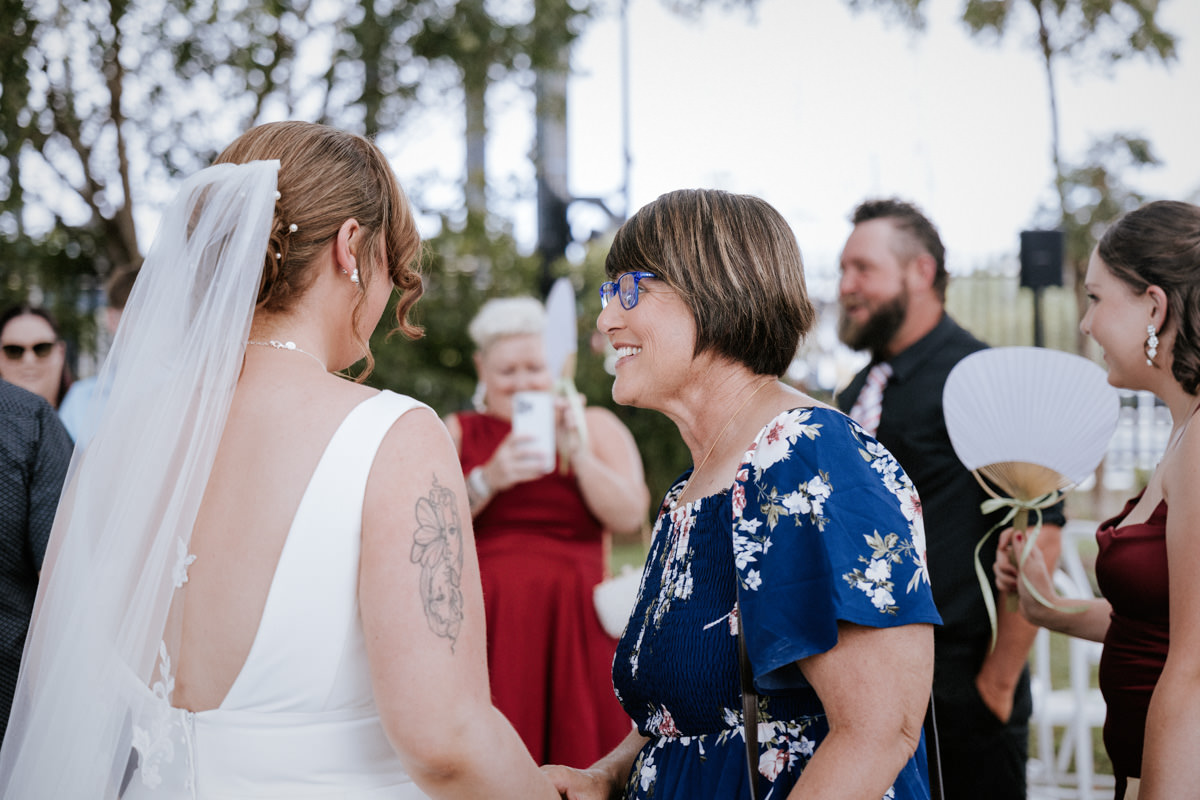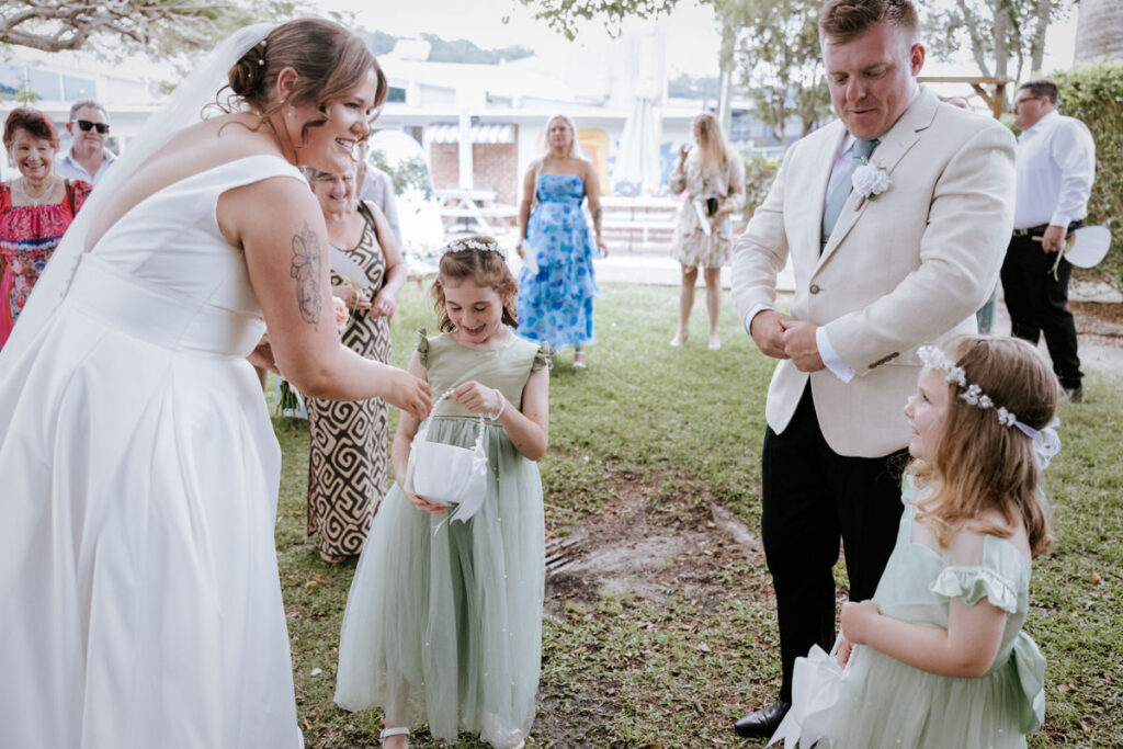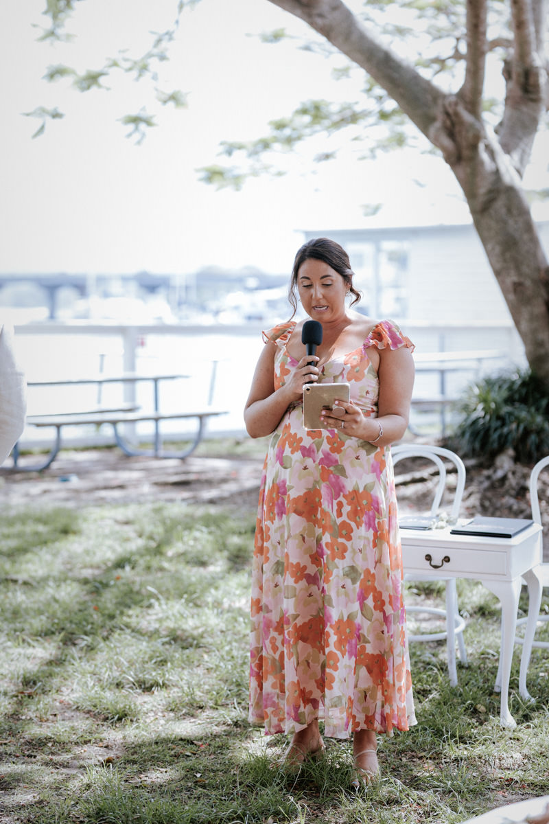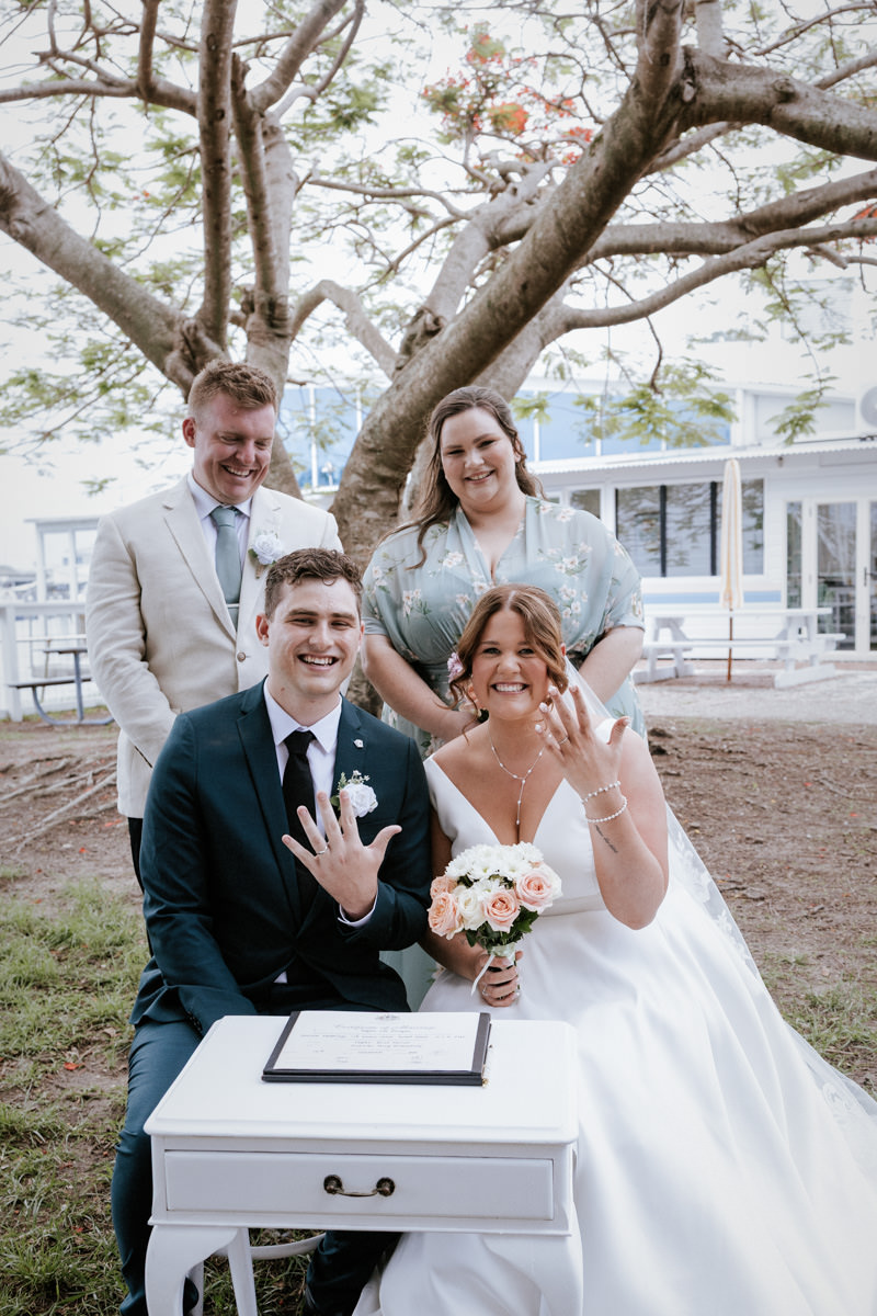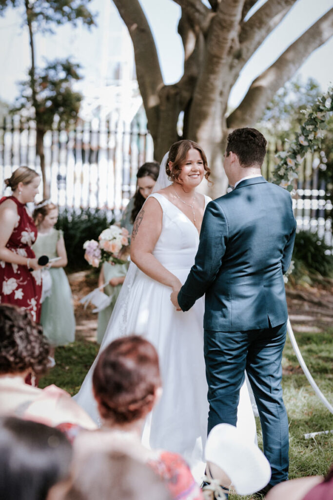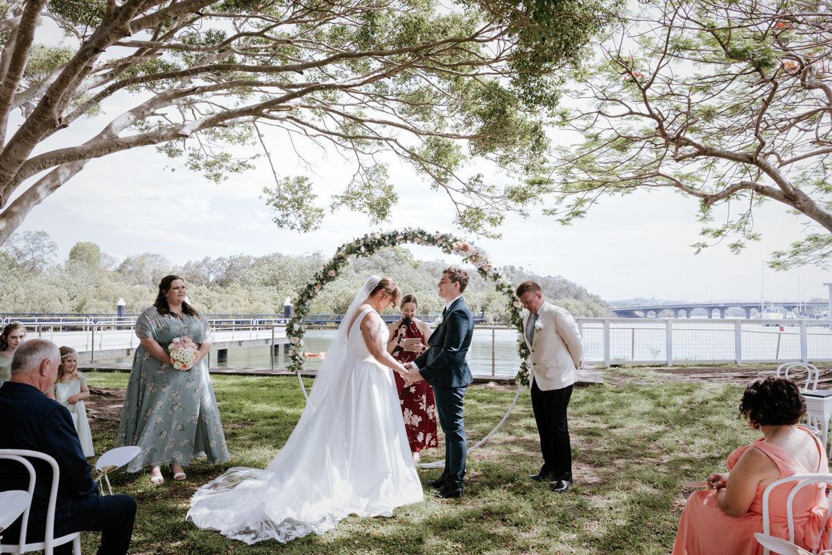 Guests had gathered under the big tree overlooking the Tweed River, such a stunning spot for a ceremony. Tegan walked down the aisle with both her mum and dad beside her, and you could feel the emotion in the air. Nicholas especially was in awe. The ceremony was heartfelt with just the right balance of laughter and happy tears. They shared rings, sealed it with a kiss, and everyone erupted into cheers.