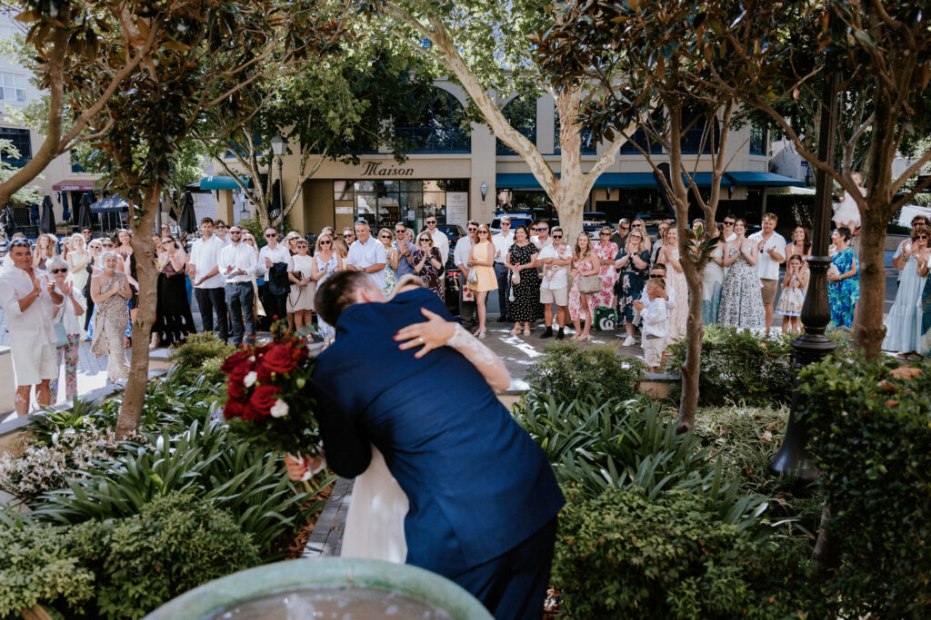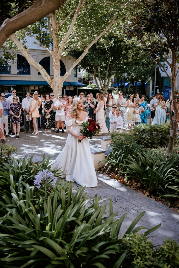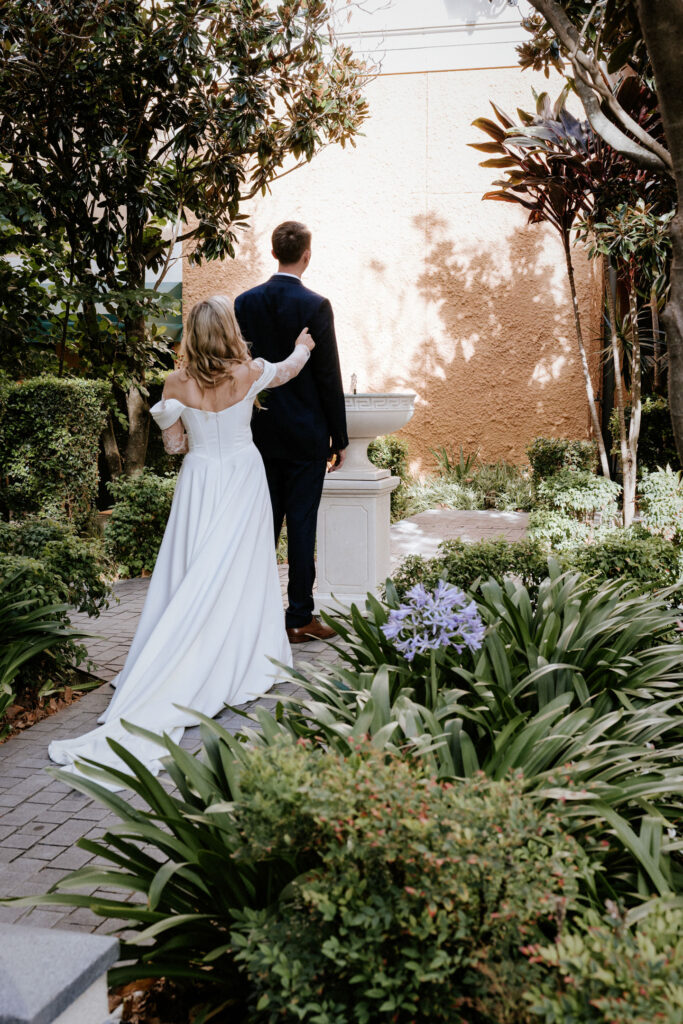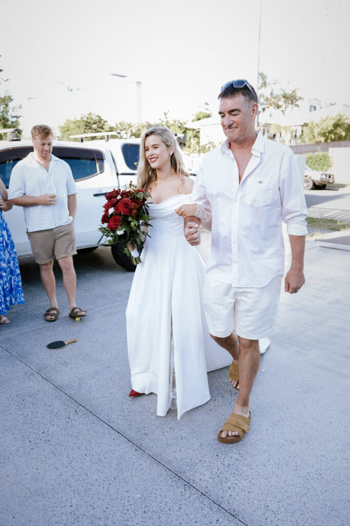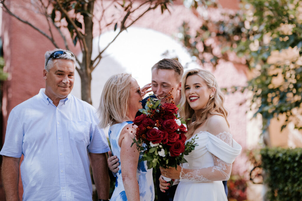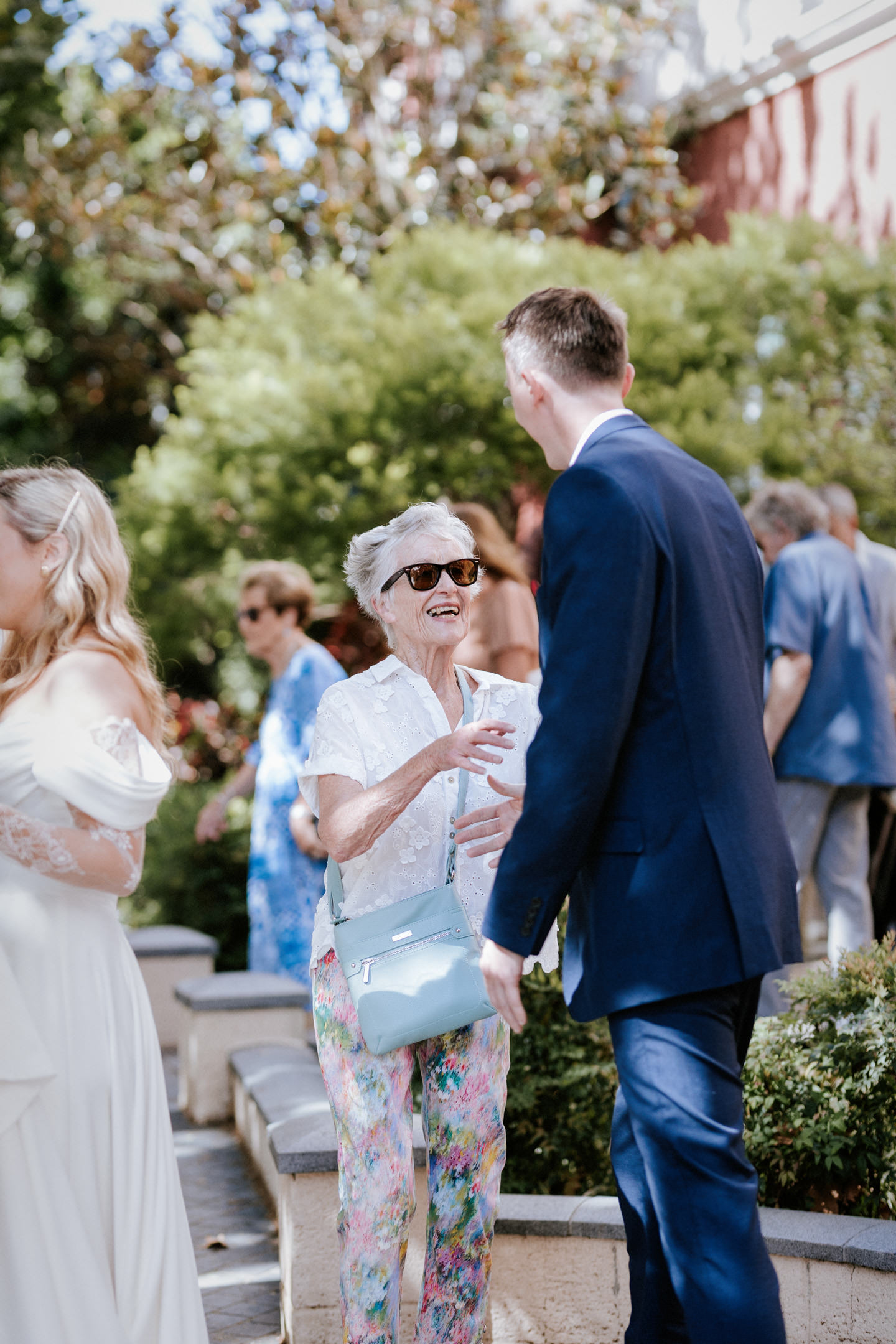 Not long after, it was Tessa’s turn to arrive, pulling up in a pink Combi and looking incredible. Bruno had tucked himself away in a little alcove so he could not see her coming. Tessa made her way over and tapped him on the shoulder for their first look. When he turned around, the smiles said everything. Such a good moment, followed by plenty of hugs and excitement from everyone nearby.
