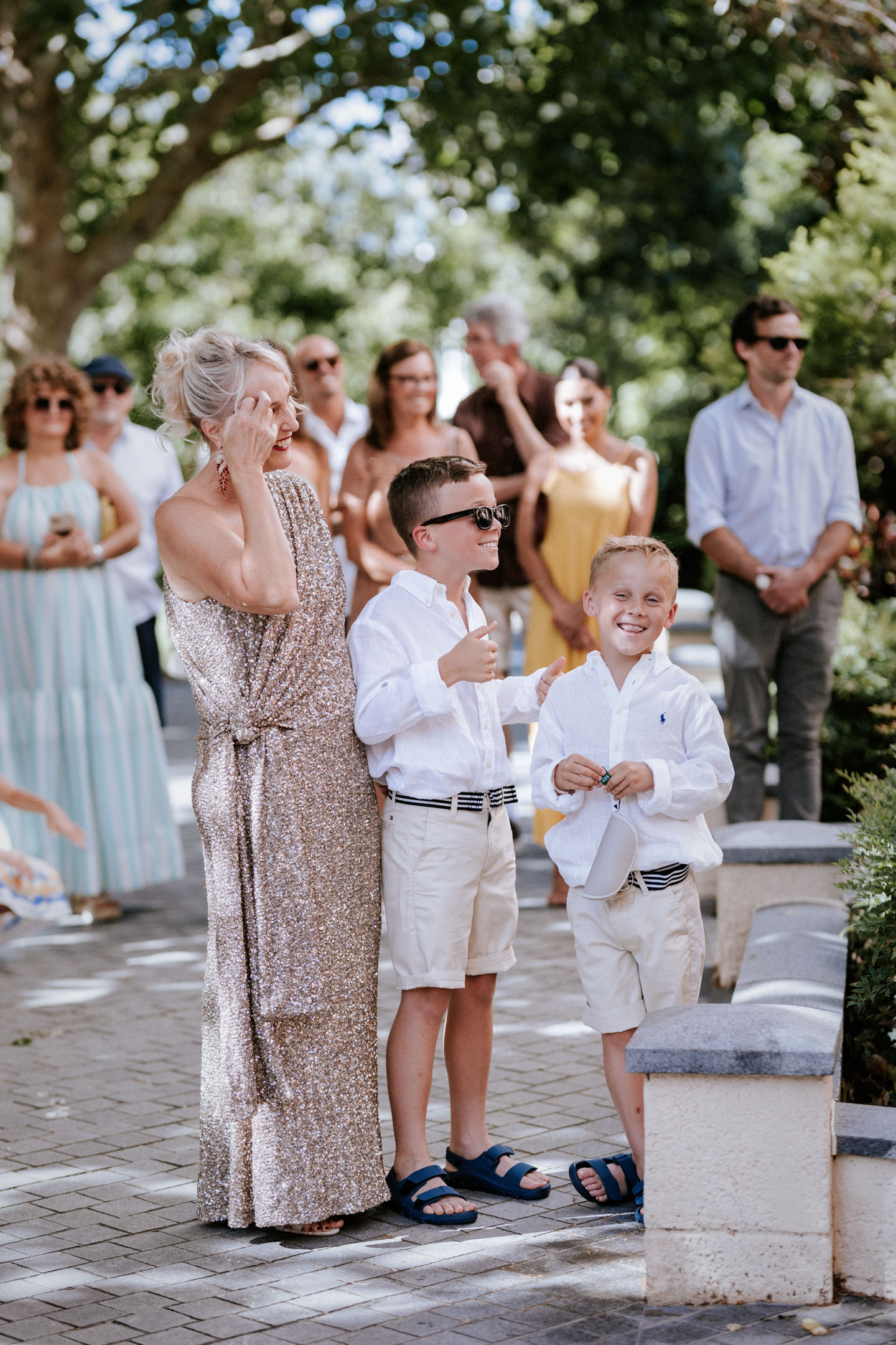 The ceremony followed and it was the perfect balance of heartfelt moments & laughs. One of the highlights was the ring bearers pulling off a perfectly timed prank by pretending they had lost the rings. A few tense seconds, then plenty of laughter once the joke was revealed. After signing everything and sealing it with a kiss, Tessa and Bruno walked back down the aisle straight into a wave of congratulations.