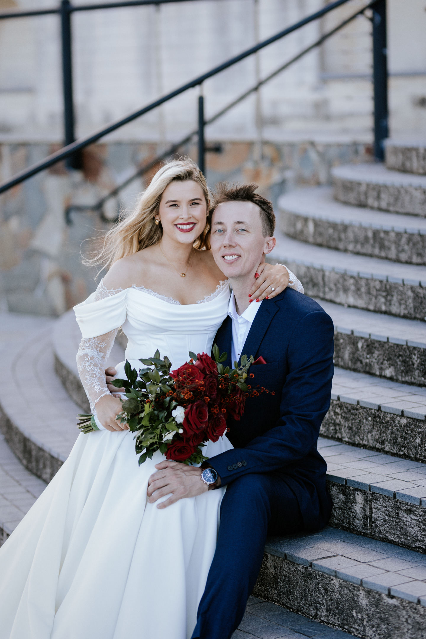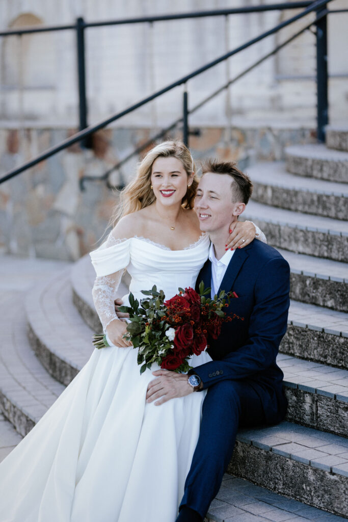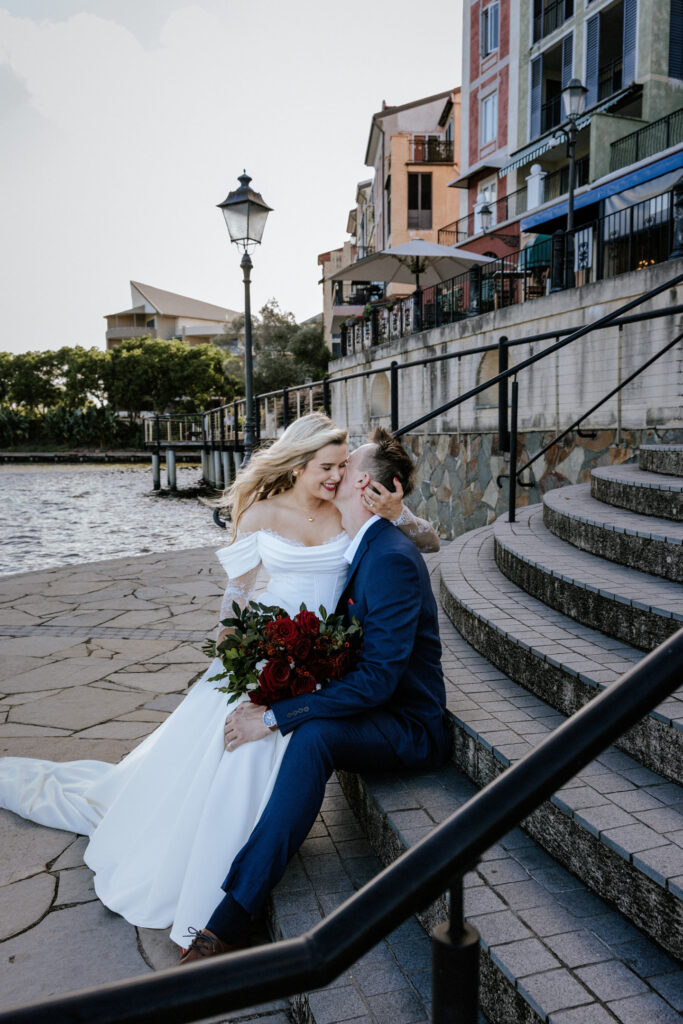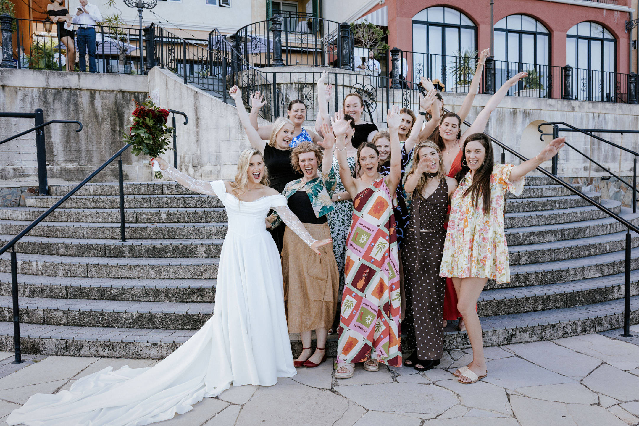 We wandered across the road to a grand staircase for a big group photo, then grabbed some family shots before guests made their way to Hard Fizz Taproom. I stole Tessa, Bruno and their friends away for a few relaxed photos by the water, then took just the two of them for some portraits as we wandered back toward the Combi.