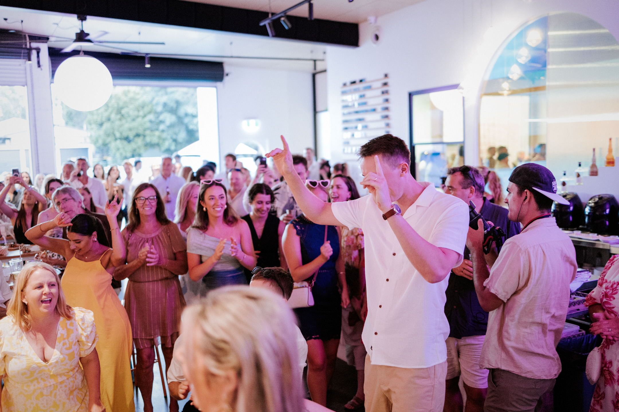 From there the afternoon just rolled along. Drinks flowing, people catching up, and that easy party energy building without anyone forcing it. Later on it was time for their first dance, with the song sung live by Tessa’s friends. Guests quickly joined them on the dance floor and the room filled fast. This crew knew how to celebrate and they absolutely went for it.