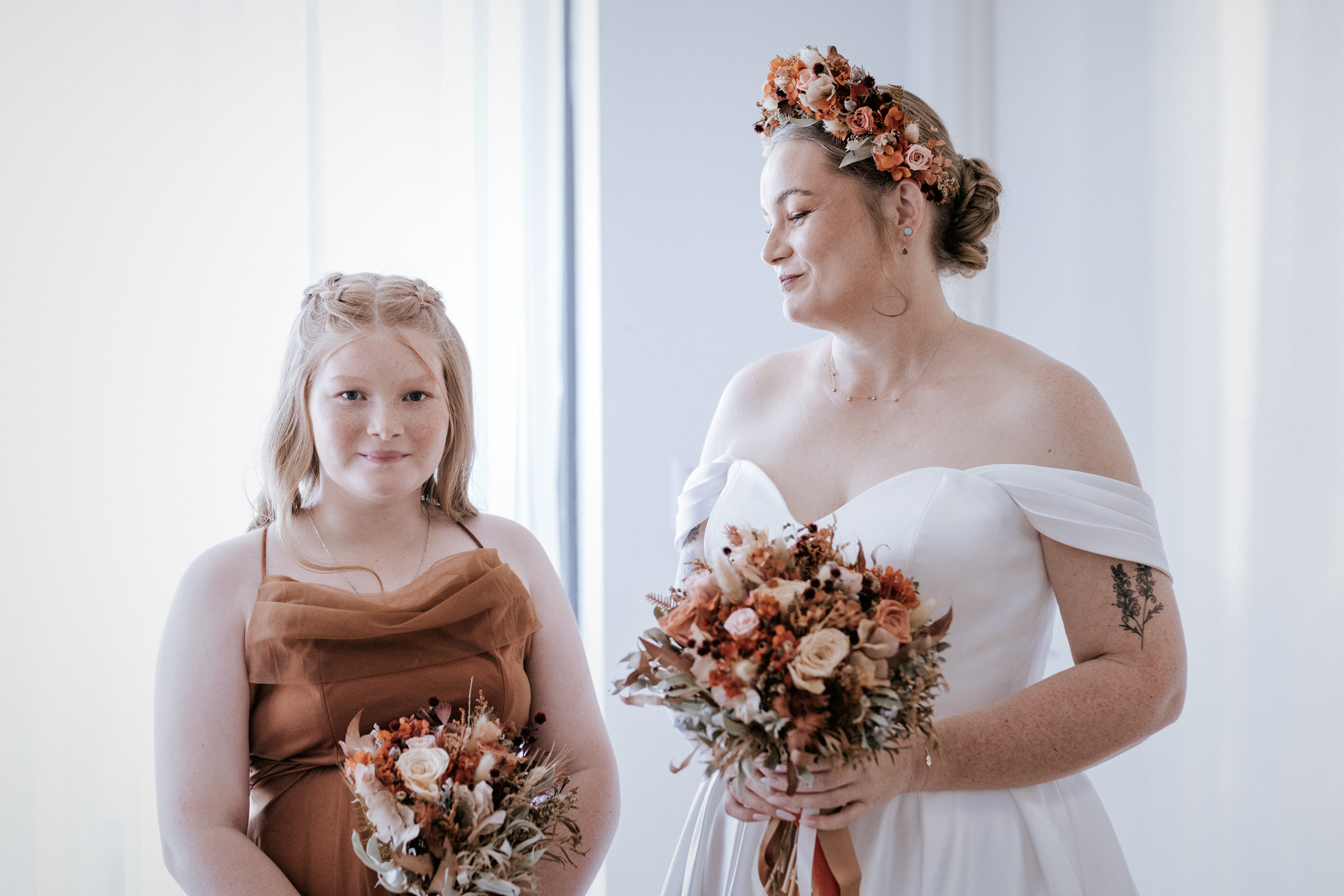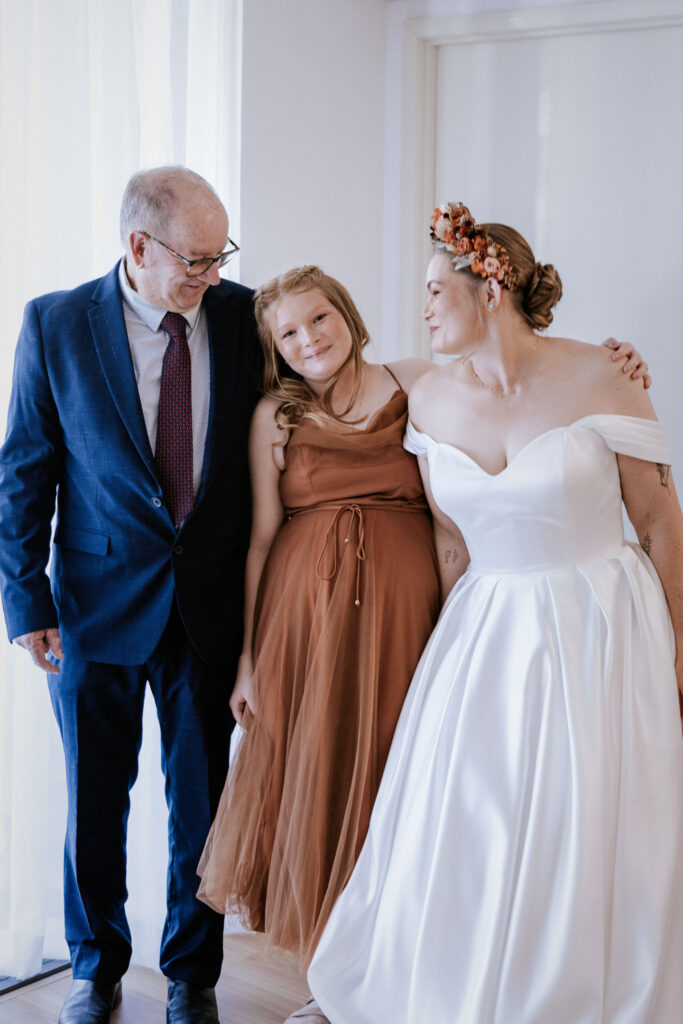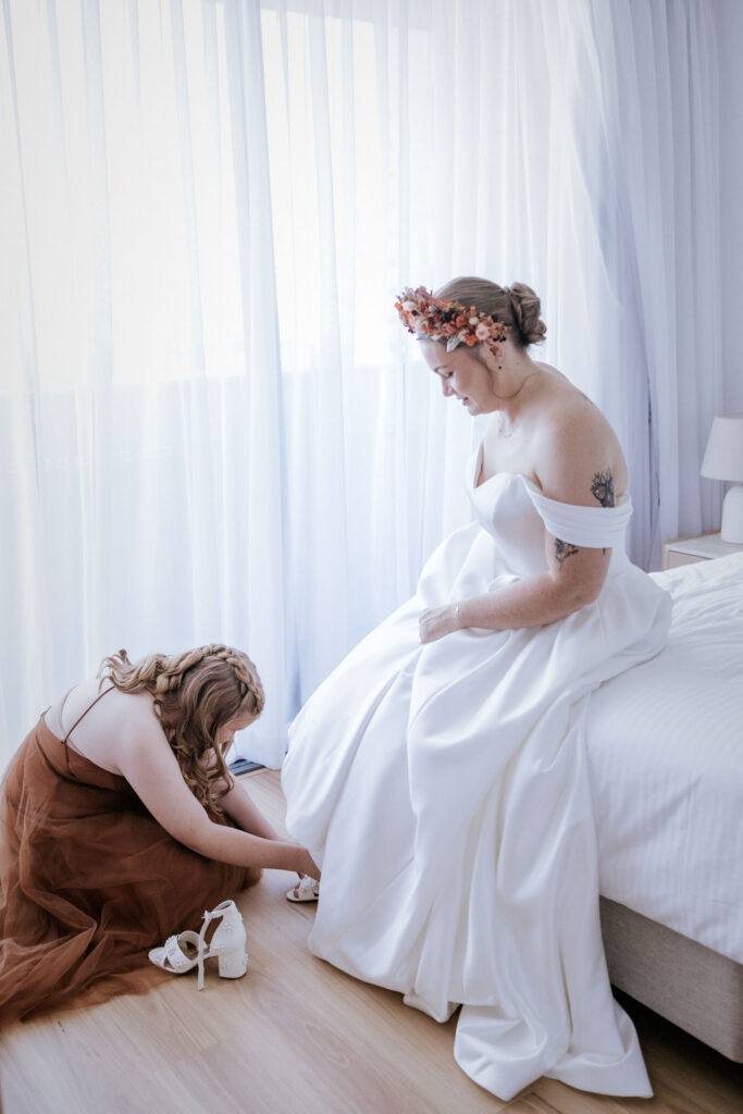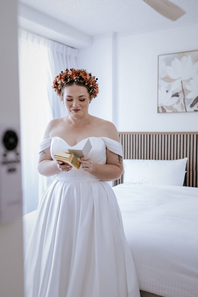 The day started with the girls getting ready at a nearby apartment. Everything was calm, organised, and running smoothly, which always makes for a good start. I spent some time capturing candid moments before Maddy was surprised with a gift from Keith. It completely caught her off guard and was such a beautiful, genuine moment.