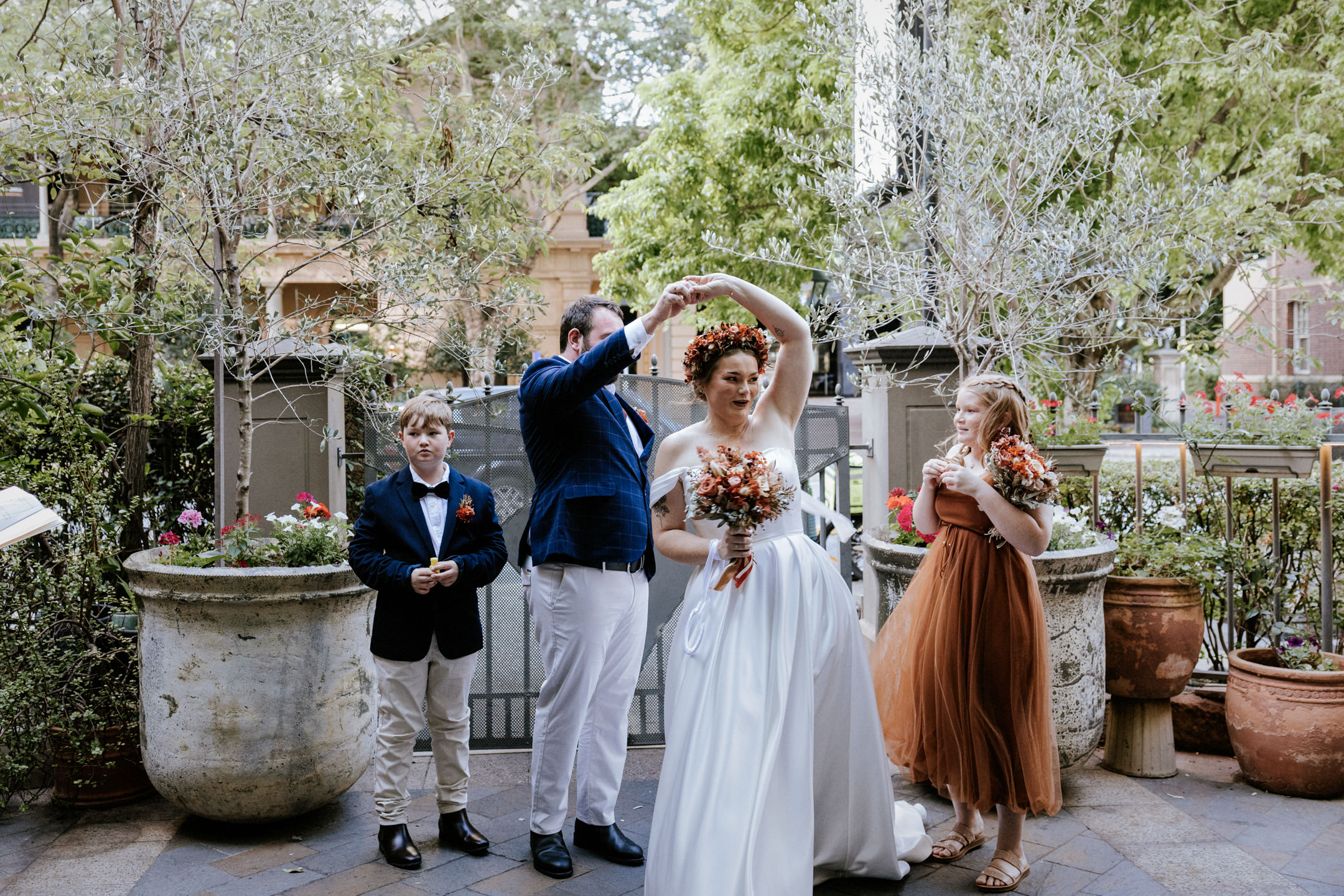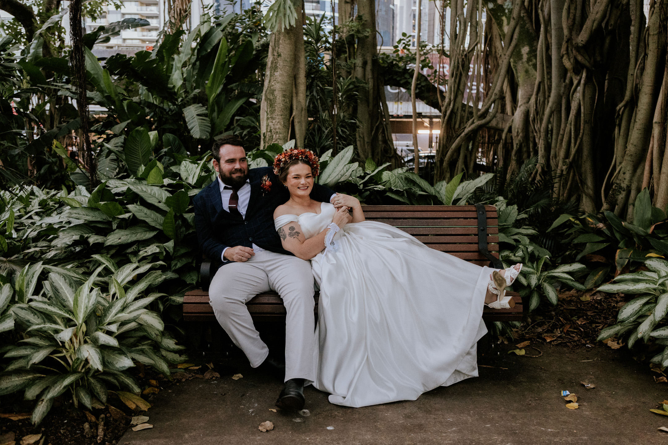 I stole Maddy and Keith away for a few quick portraits in the botanical gardens, taking advantage of the soft light as the sun started to drop. A nice quiet moment for the two of them before heading back into the celebrations.