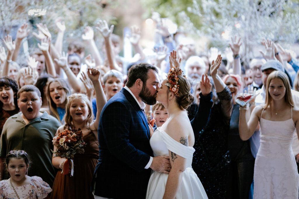 The ceremony was heartfelt, with just the right mix of emotion and laughter. After their vows, first kiss, and signing the certificate, they walked back down the aisle through a sea of bubbles and straight into hugs from their family and friends.