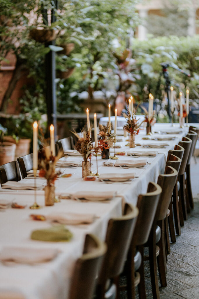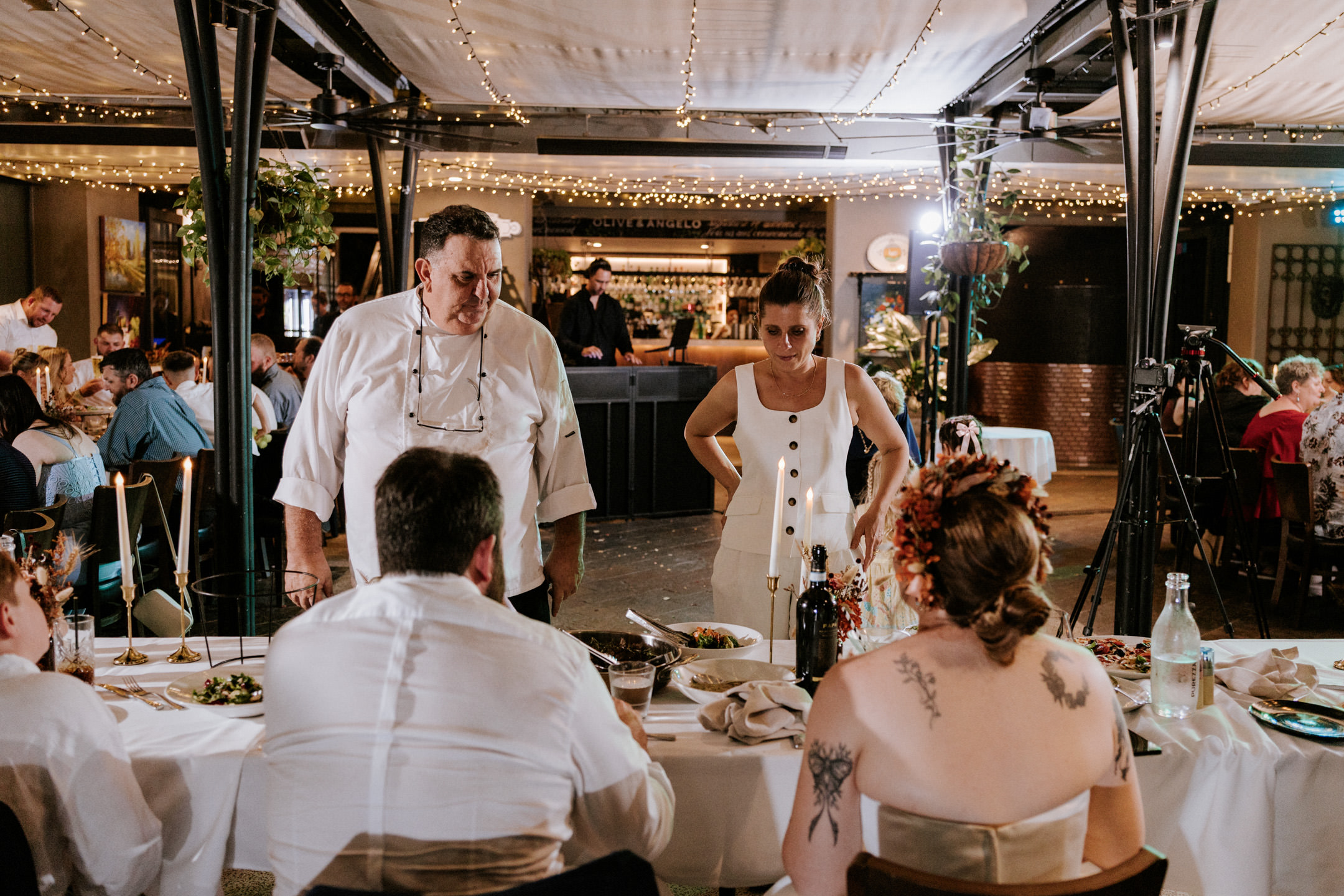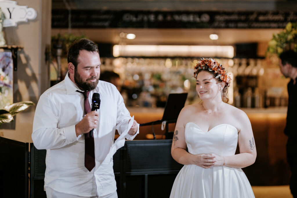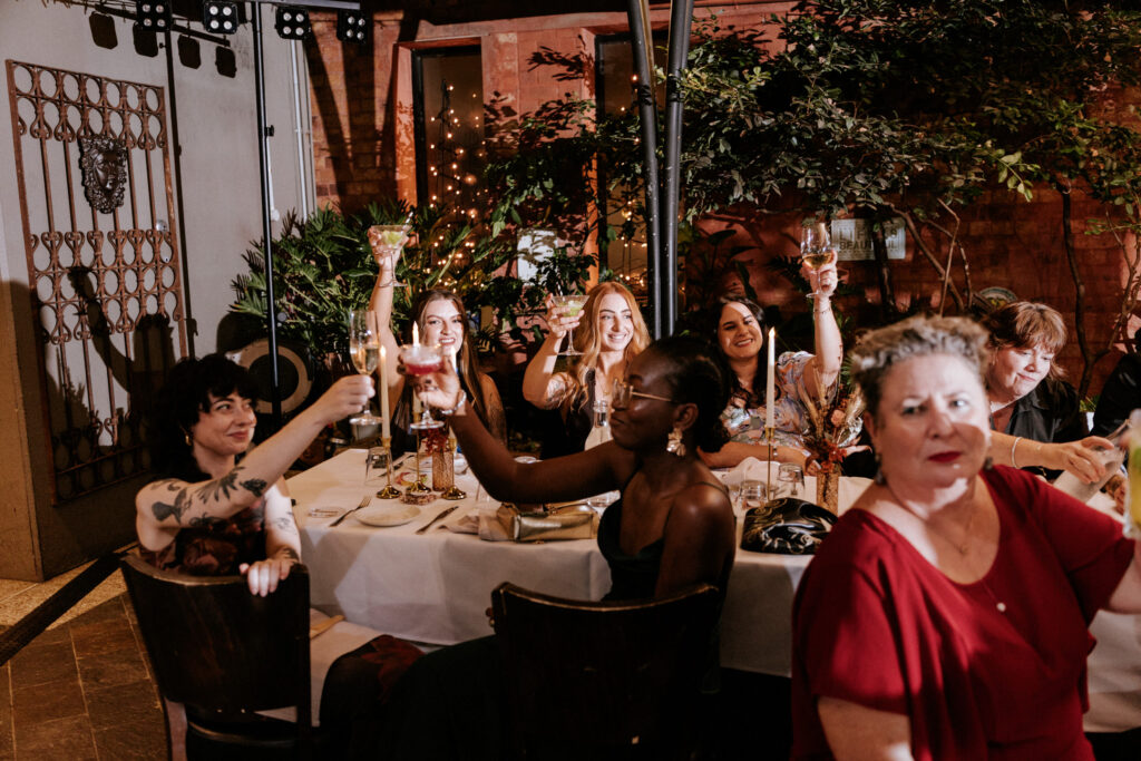 Back at Olive & Angelo, they were welcomed into the reception with cheers and guests waving napkins in the air, which set the tone for the night ahead. Speeches followed, a few before dinner and the couple sharing theirs after, all full of love, laughter, and great stories.